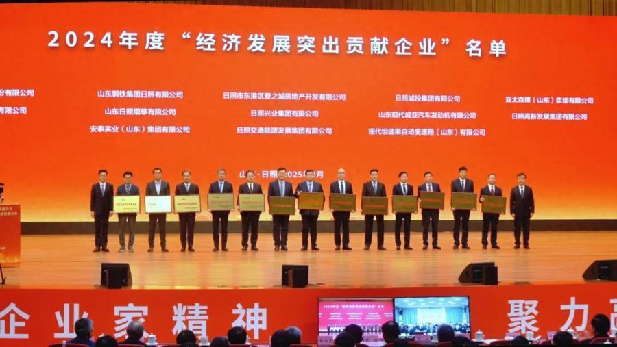 正月初八是首个“日照企业家日”。当天下午,日照市项目提升年暨企业高质量发展大会召开。会上宣读了《关于表扬2024年度全市高质量发展优秀企业的通报》,亚太森博(山东)浆纸有限公司再次荣获“经济发展突出贡献企业”称号,同时还荣登“‘项目突破年’突出贡献企业”“ 制造业领军企业”两个重要榜单并名列前茅。公司董事副总经理王伟国,党委书记、公司事务总经理李润明等出席会议并上台领奖。